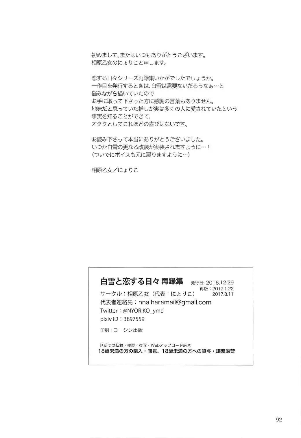 (C92) [Aihara Otome (Nyoriko)] Shirayuki to Koisuru Hibi Sairokushuu (Kantai Collection -KanColle-)