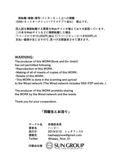 [Koufuku Iinchou (Happy)] Doukyuusei to Otomari [Digital]